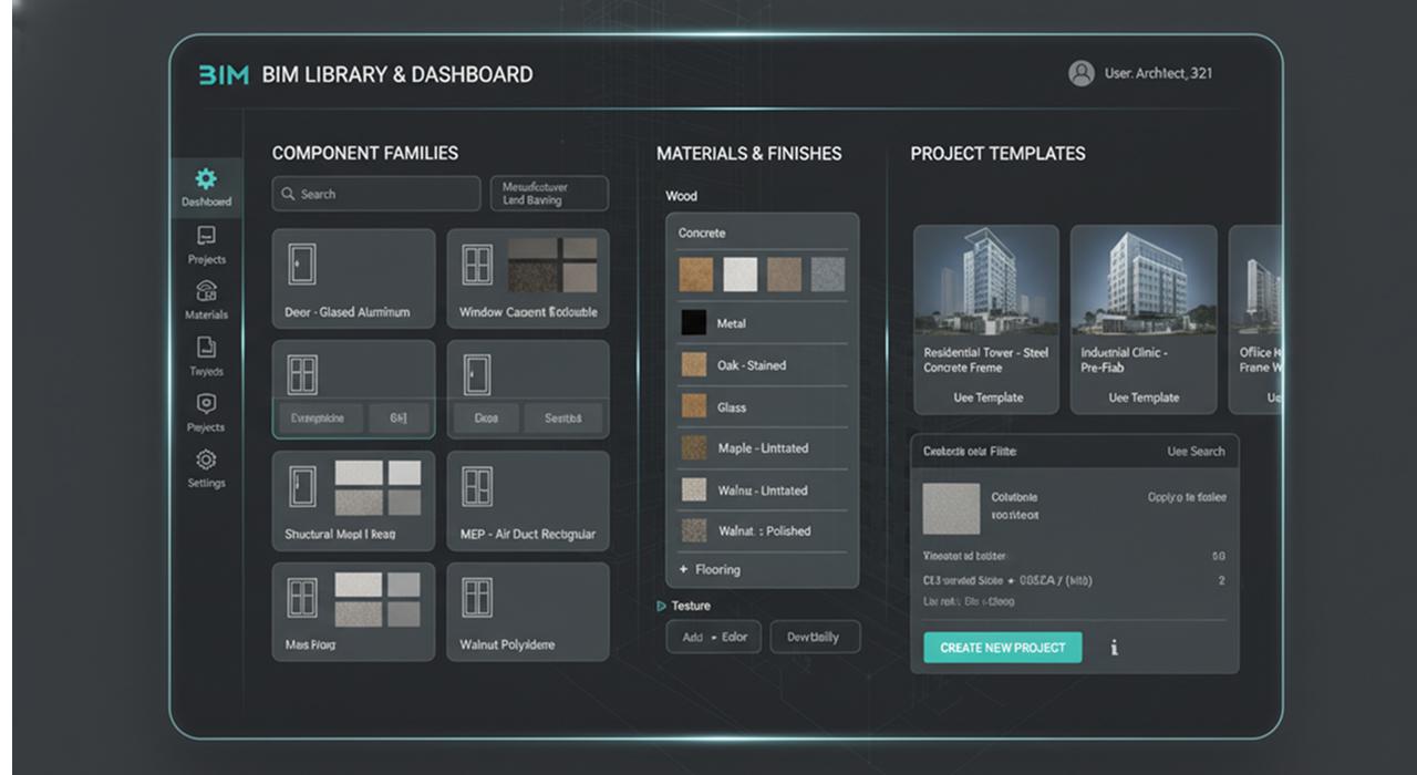 A BIM (Building Information Modeling) template or database is a collection of standard or pre-defined BIM models, components, and other information that can be used as a starting point for creating new BIM models. These templates and databases are typically developed and maintained by organizations or industry groups, and are designed to be used by BIM software users to save time and improve the consistency and quality of their BIM models.
